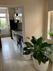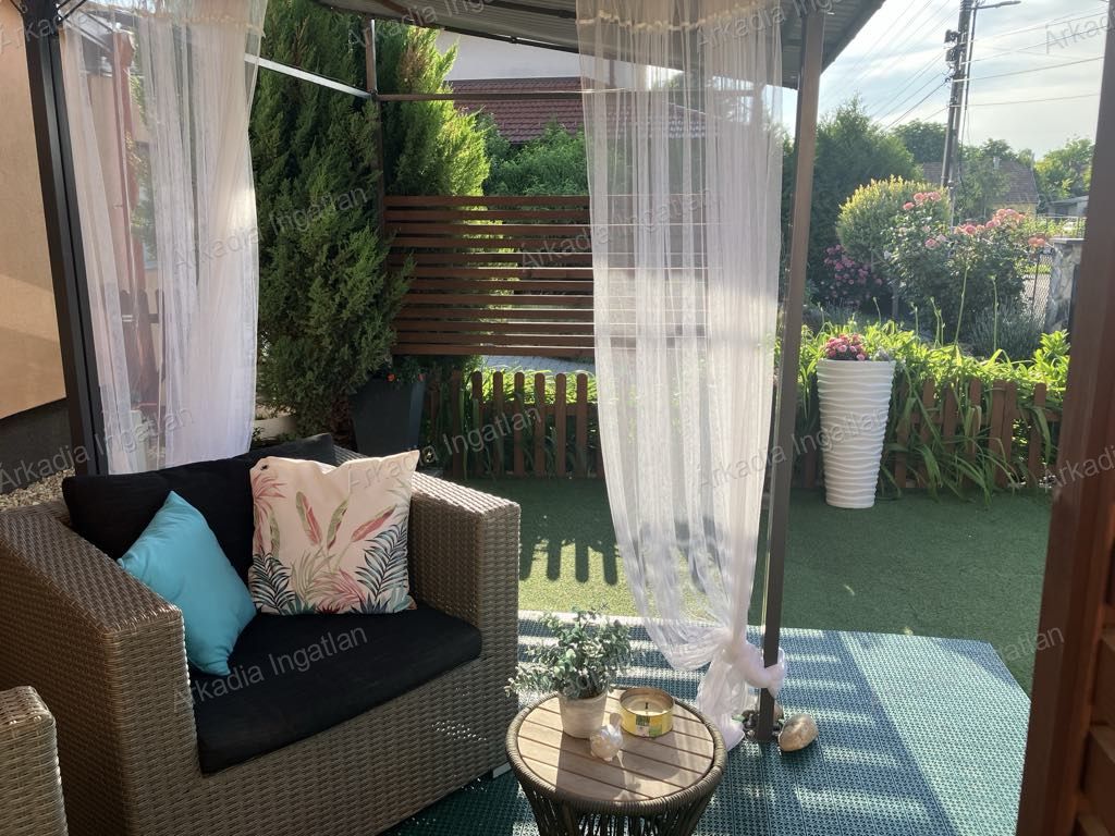 Az ingatlanban 3 nagybelmagasságú (3,3 m) szoba található, ami laminált padlóburkolatú, nagyméretű konyha-étkező, korszerű, modern fürdőszoba, szauna, masszázs medence, masszázsgép biztosítja a felfrissülést, szibériai vörösfenyővel burkolt kerti szoba, ami minden évszakban használható, a házhoz pince és 30 nméteres garázs is tartozik, ami alkalmas 2 elektromos autó töltésére is.