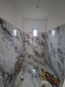 -A burkolatok nagy méretű járólap a konyhában, nappaliban, fürdőszobákban,